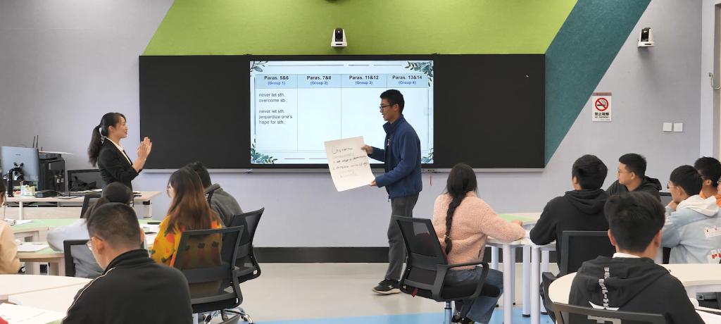 组建了“大学英语POA教学团队”,深钻细研“产出导向法”,将其融入教学实践。团队教师周艳青提交的实录课充分运用基于“产出导向法”的翻转课堂模式,以学习为中心,成果为导向,借助智慧教学工具、网络平台等资源,输入与输出相结合,教学中充分融入思政元素,不断提高学生的语言能力和人文素养。最终,周艳青老师从全国100余所高校的292名教师中脱颖而出。