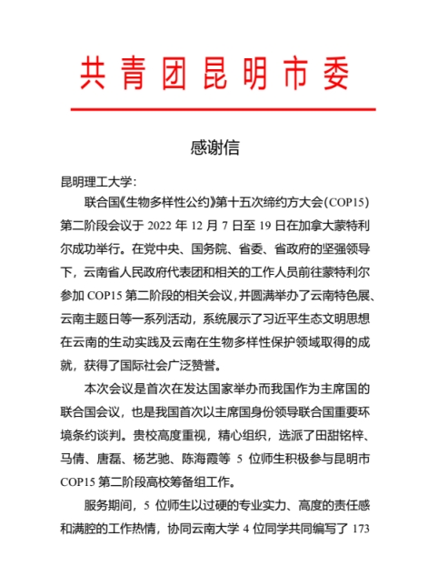 和云南大学选调师生组成高校筹备组,协助昆明市COP15筹备办和共青团昆明市委进行相关工作。接21点规则
