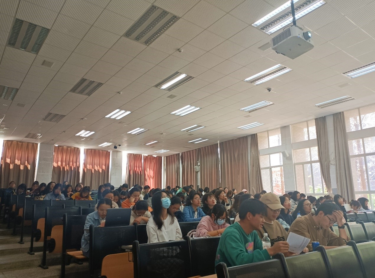 于中心区教学楼100教室开展“就业向左,考研向右”讲座。本次讲座由外文院学生会主办,黄安新老师主讲,外文院共有239位同学参加。