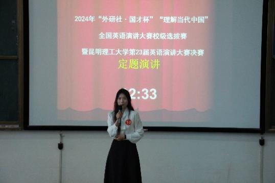 2024年“外研社·国才杯”“理解当代中国”全国大学生外语能力大赛以“理解中国,沟通世界”为主题,引导选手深入领会习近平新时代中国特色社会主义思想的核心要义,理解中国之路、中国之治、中国之理,涵养家国情怀、全球视野,拓展知识广度、思想深度,展现外语能力、跨文化能力、思辨能力、创新能力等综合素养。我校系列赛事选拔赛的成功举办有效营造了“以赛促教、以赛促学、以赛促改、以赛促建”的良好氛围。昆工学子用外语讲好中国故事,用青春传递中国声音,用心聆听世界声音,展现了当代大学生积极有为的精神风貌。