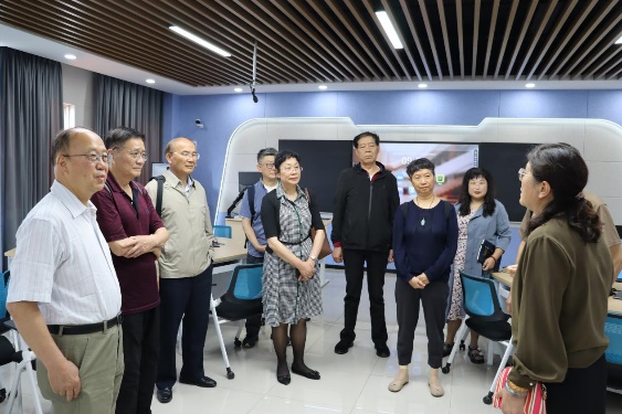 校督导专家还参观了21点规则新建的学科智慧教室,体验了虚拟仿真国际学术会议实训室的VR英语实景训练场景。