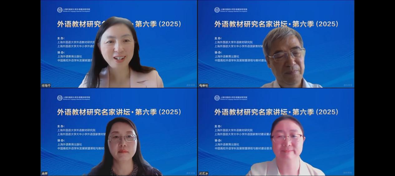 本期讲坛聚焦“外语教材中的中华文化融入与呈现研究”这一前沿主题,汇聚了外语教材研究领域的权威专家。上海外国语大学梅德明教授从国家战略与文化自信的高度,深刻阐释了外语教材中系统、立体、有效融入中华优秀文化的必要性与紧迫性,强调教材应成为讲好中国故事、传播好中国声音的重要载体。青岛大学庞晖副教授则结合具体教材编写实践,分享了在内容选择、活动设计、呈现方式等方面实现中华文化有机融入的创新策略与生动案例,为一线教师提供了极具操作性的参考。上海外国语大学迟若冰副研究员则从评估维度切入,探讨了如何科学评价教材中文化融入的深度、广度与效度,为教材研究与修订提供了重要方法论支撑。