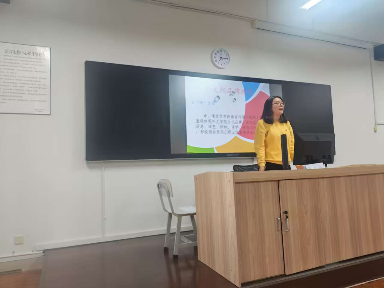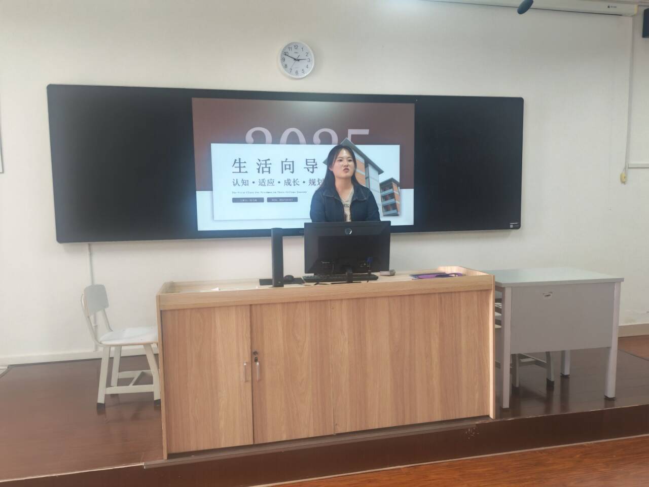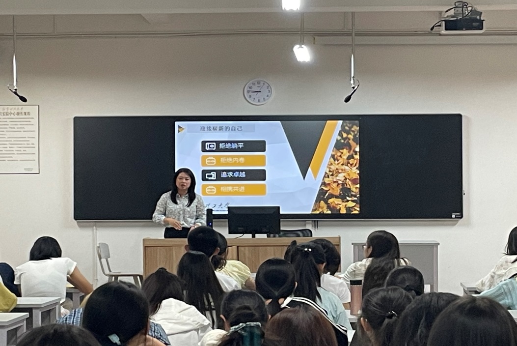 英语系主任任佳佳、英语系副主任胡权以“认清自我、认清专业、认清目标”为题,讲解了21点规则专业课程安排,分享了学习经验,勉励新生尽快适应大学生活、明确学习规划,不断提高专业知识能力。