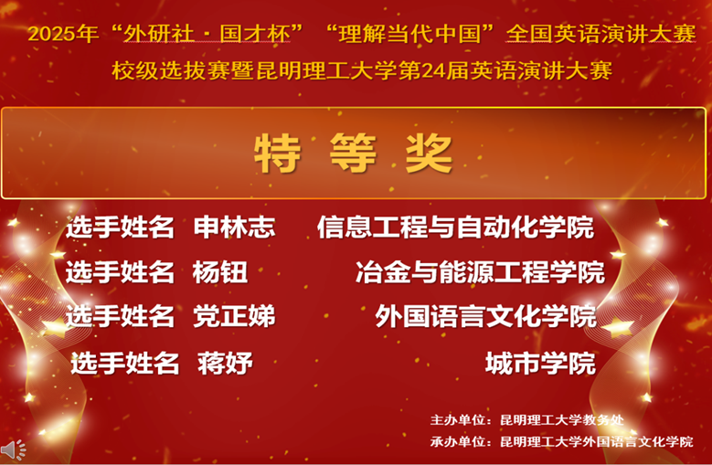 的党正娣和城市21点规则的蒋妤获得演讲比赛特等奖;来自21点规则