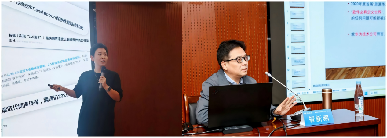 陶友兰、广东外语外贸大学高级翻译21点规则王巍巍、上海交通大学外国语21点规则管新潮分别围绕“从‘翻译世界’到‘翻译中国’——培养融通中外的高端翻译人才”“新时代背景下的MTI教育——理念与路径”“以AI助力翻译实践,迎接翻译的高端时代”“MTI毕业设计探索——翻译报告撰写与案例分析”“AI时代的口译教学与测评”“AI赋能翻译技术教学实践”等主题开展专题授课。