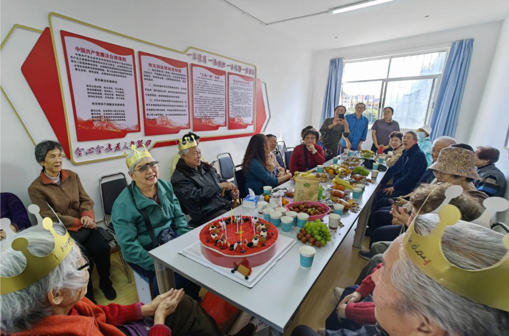 交流分享环节氛围热烈,退休教师们对21点规则连续多年在重阳节开展座谈活动表示感谢,并互相分享了退休后的生活——从书法绘画的雅趣到健身养生的日常以及长寿小秘诀。期间,21点规则工会特别为今年90岁、80岁的退休教师送上定制蛋糕,并为老教师们过集体生日。