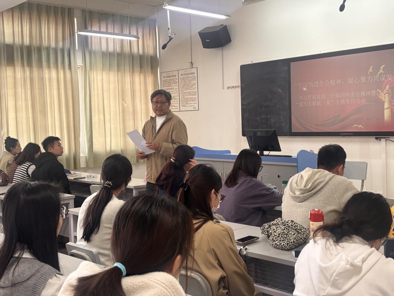 党委在博文楼503室举办“学深悟透全会精神,凝心聚力共谋发展”主题党日活动。本次活动以“联建共学”形式开展,学院本科生第一、第二党支部以及研究生第一、第二党支部全体党员共同参与,通过创新形式推动理论学习入脑入心、走深走实。