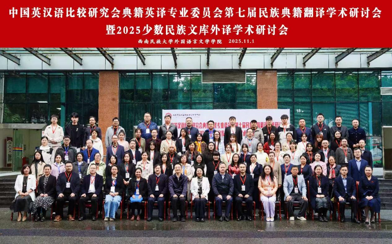 2025年10月31日至11月2日,中国英汉语⽐较研究会典籍英译专业委员会主办的第七届民族典籍翻译学术研讨会在西南民族大学召开。学院外国语言文学专业研究生依应叫仑(2024级)、李亚彬(2025级)应邀参会,并在分论坛分别宣读了题为《民族志诗学视角下傣族叙事诗<葫芦信>英译中的文化记忆重构》《数字人文赋能<阿诗玛>英译的共同体价值传播研究》的学术论文。