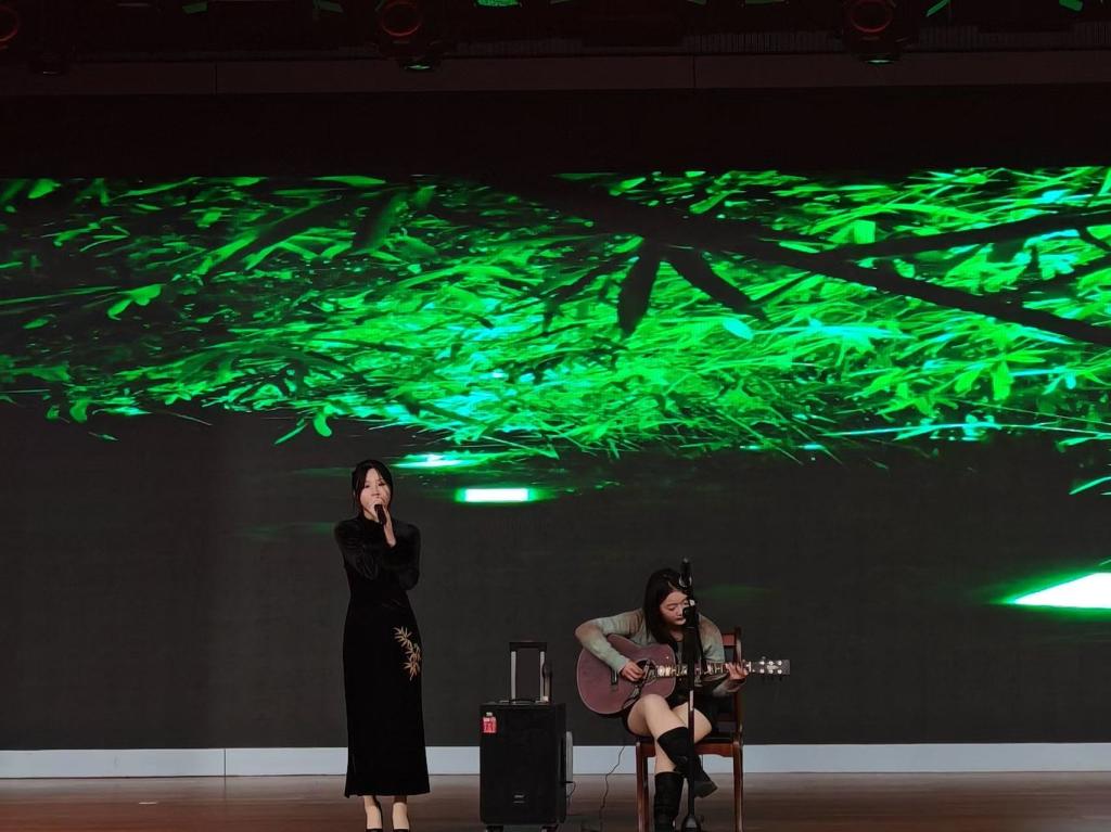 语言类节目充分展现了外院学子的专业素养与创新活力。小品《再见老师》以幽默风趣的表演和贴近大学生活的剧情,引发了全场观众的强烈共鸣与阵阵掌声,在欢笑中诉说着深厚的师生情谊。由学院“清风双语宣讲团”带来的英文诗歌朗诵《梅》,则以纯正的发音和深沉的情感,致敬了坚韧高洁的品格,体现了中西文化的交融之美。