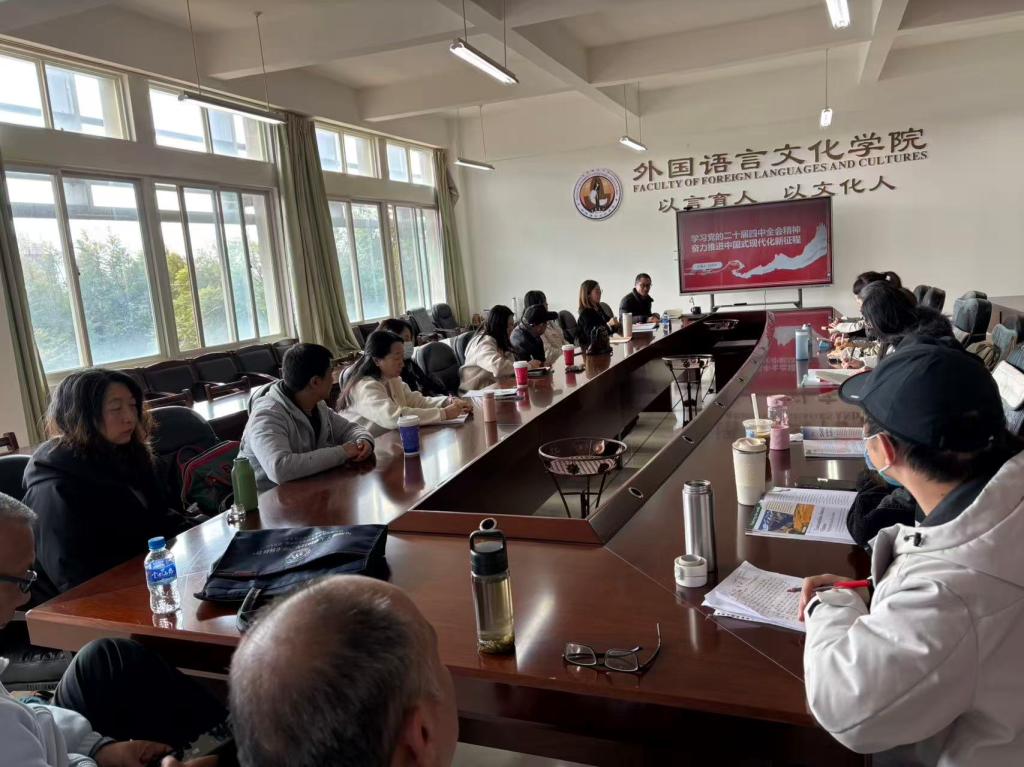 教工第一党支部在博文楼312会议室举行主题党日活动。党支部书记王凤玲主持会议,学院党委书记刘建平、支部全体党员和大学英语第一教研部教师代表参会。