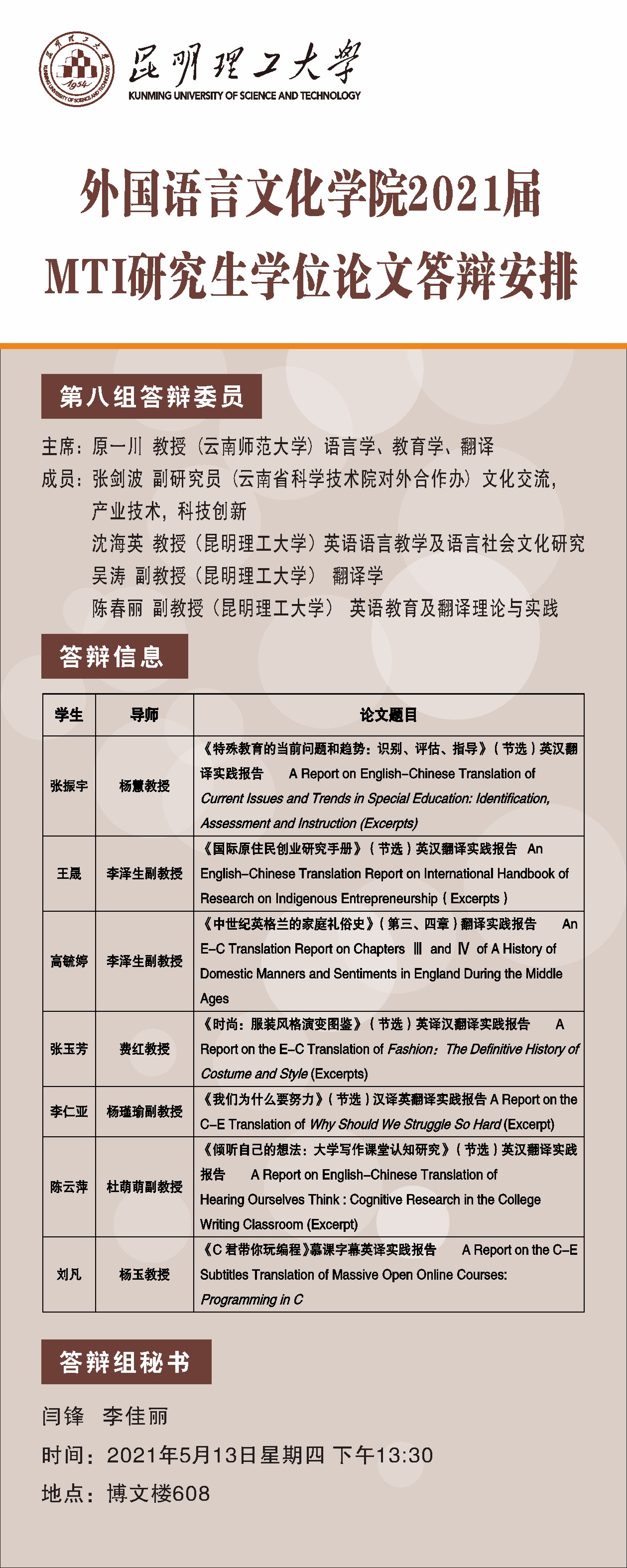 21点规则 2021届MTI研究生学位论文答辩公示(第八组)