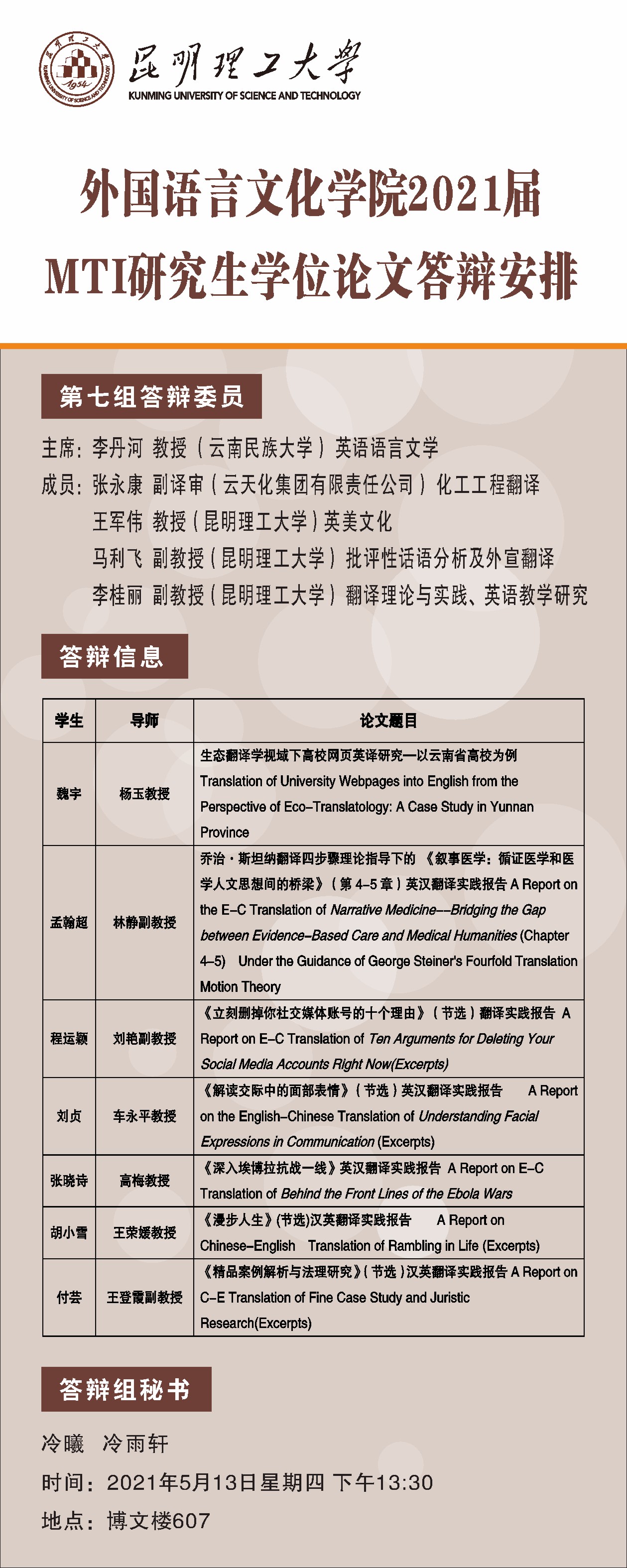 21点规则 2021届MTI研究生学位论文答辩公示(第七组)