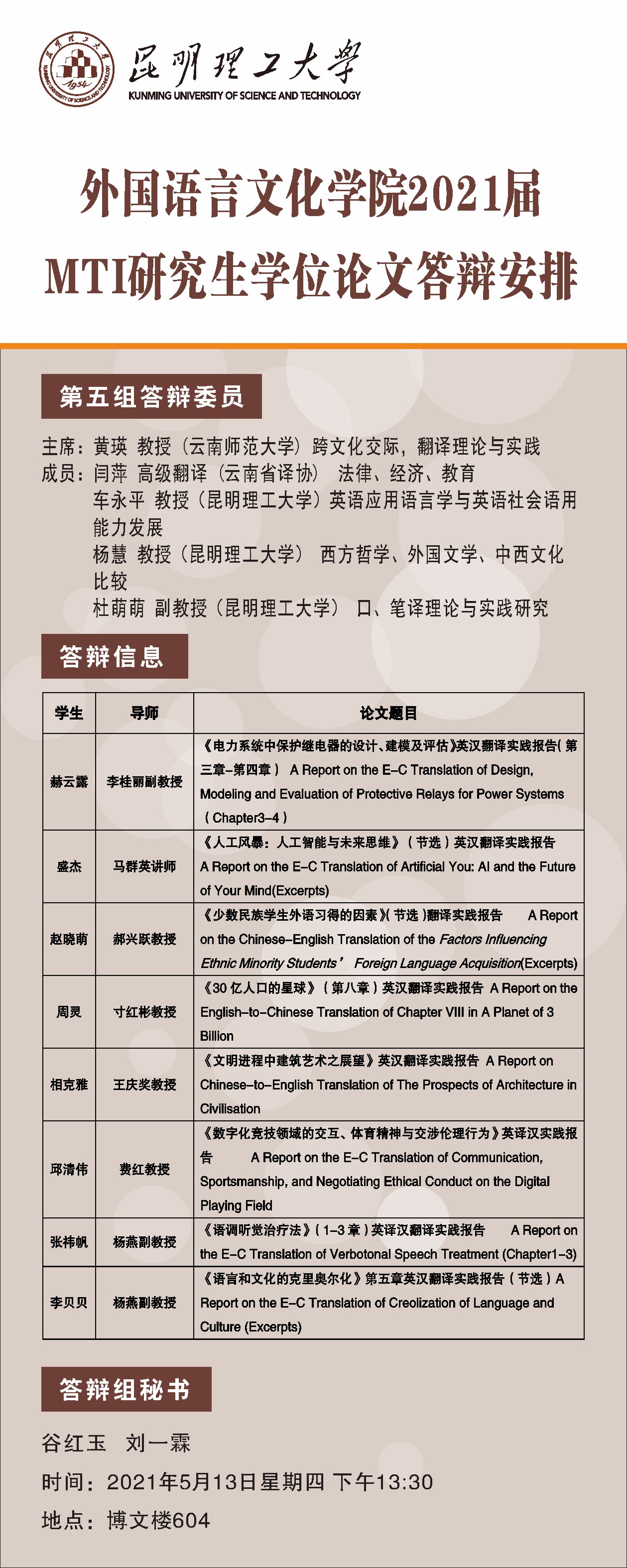21点规则 2021届MTI研究生学位论文答辩公示(第五组)