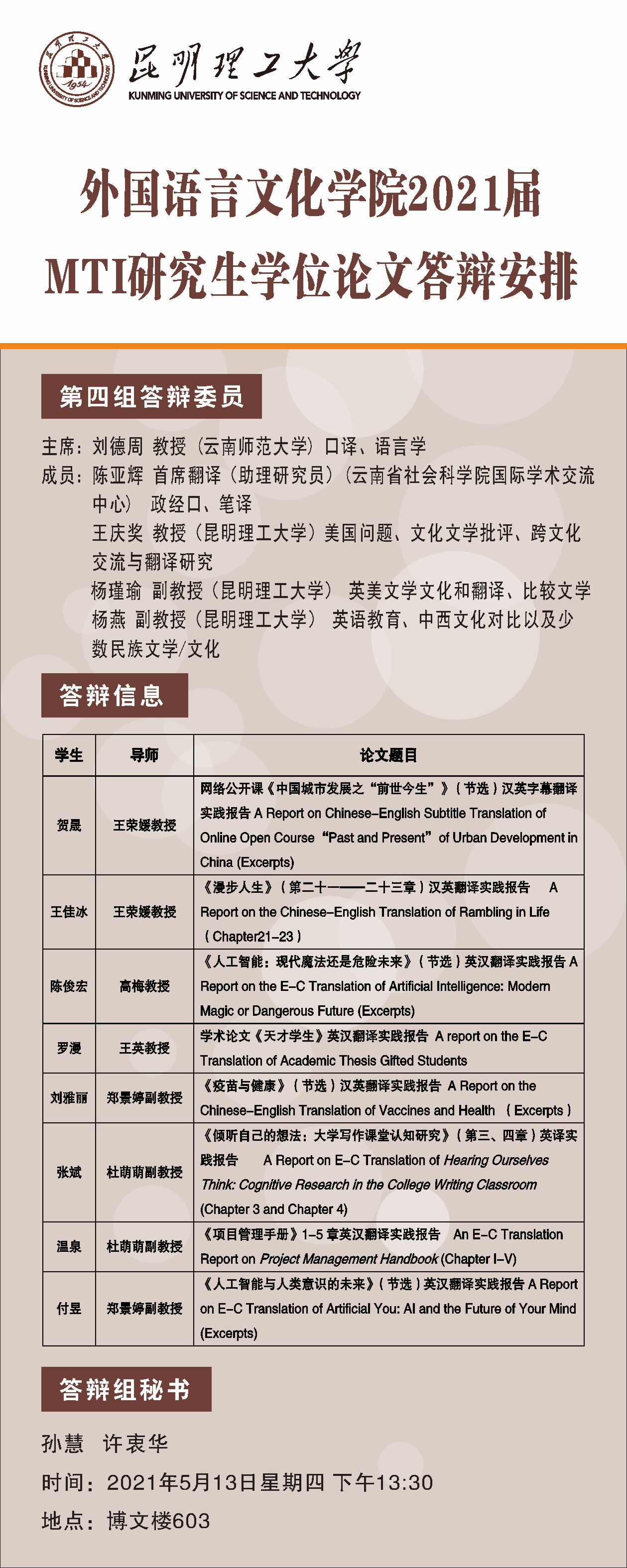 21点规则 2021届MTI研究生学位论文答辩公示(第四组)