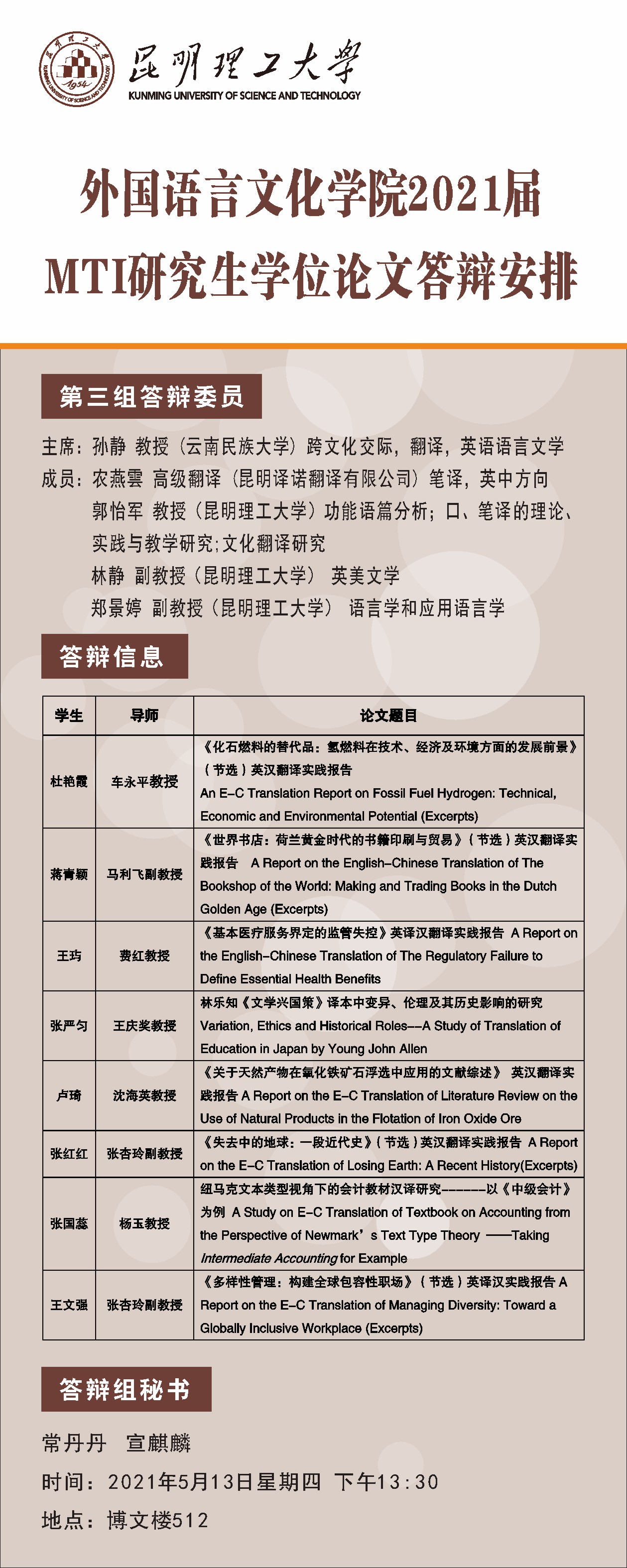 21点规则 2021届MTI研究生学位论文答辩公示(第三组)