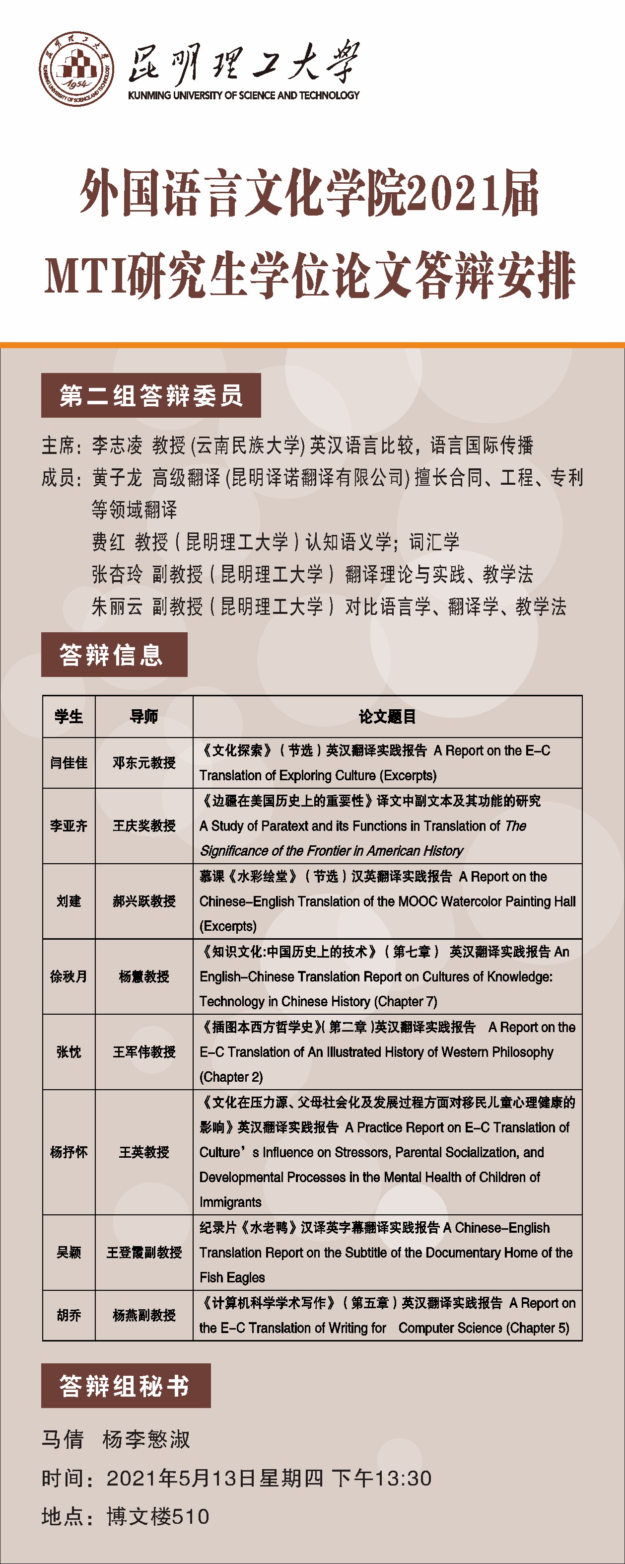 21点规则 2021届MTI研究生学位论文答辩公示(第二组)