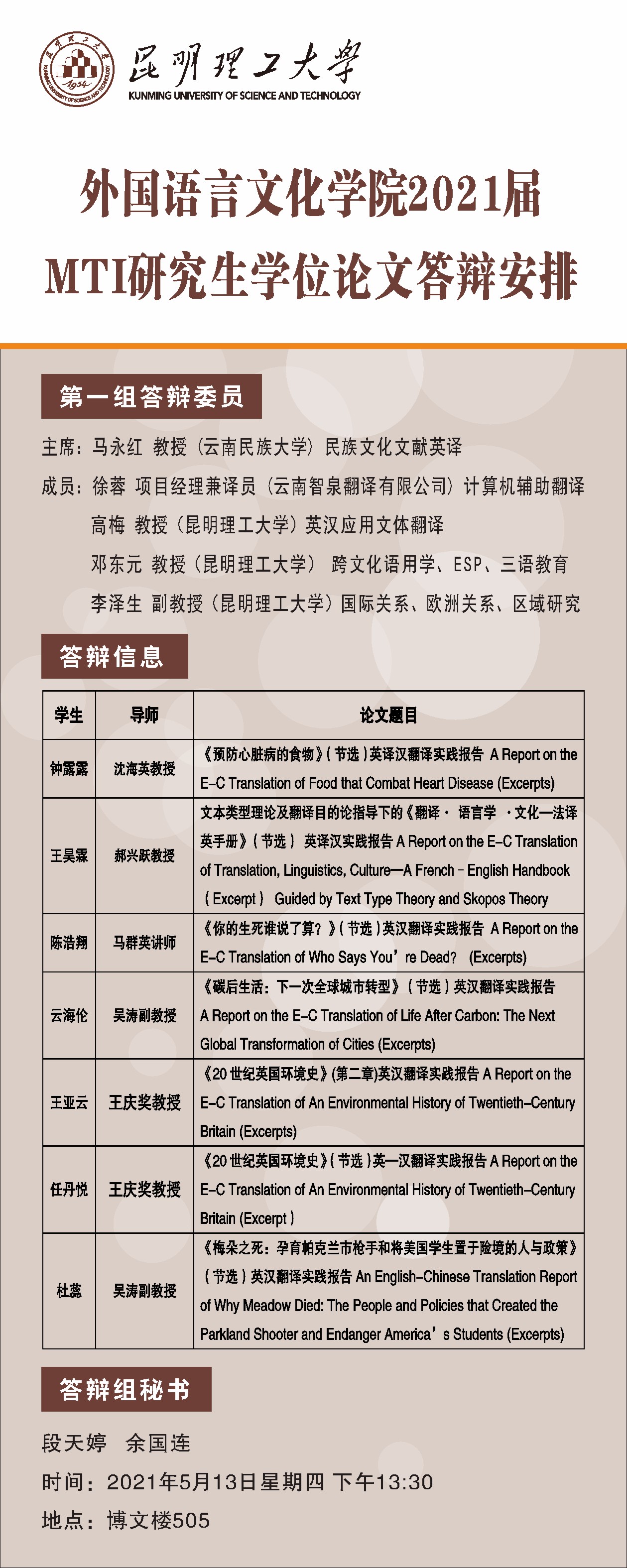 21点规则 2021届MTI研究生学位论文答辩公示(第一组)