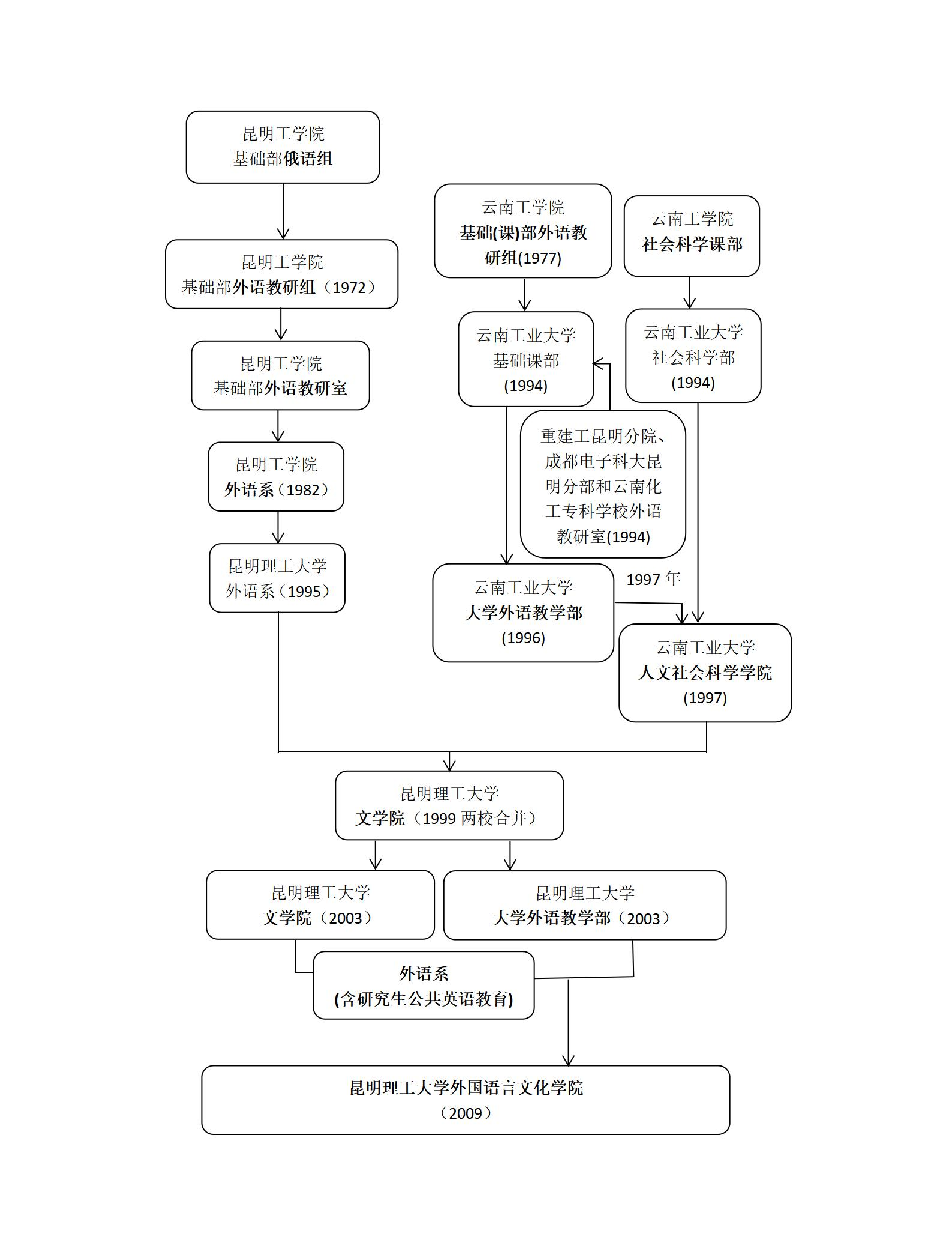1994年,云南工业大学成立,重庆建筑工程21点规则昆明分院、成都电子科大昆明分部和云南化工专科学校外语教研室并入云南工业大学基础课部;
