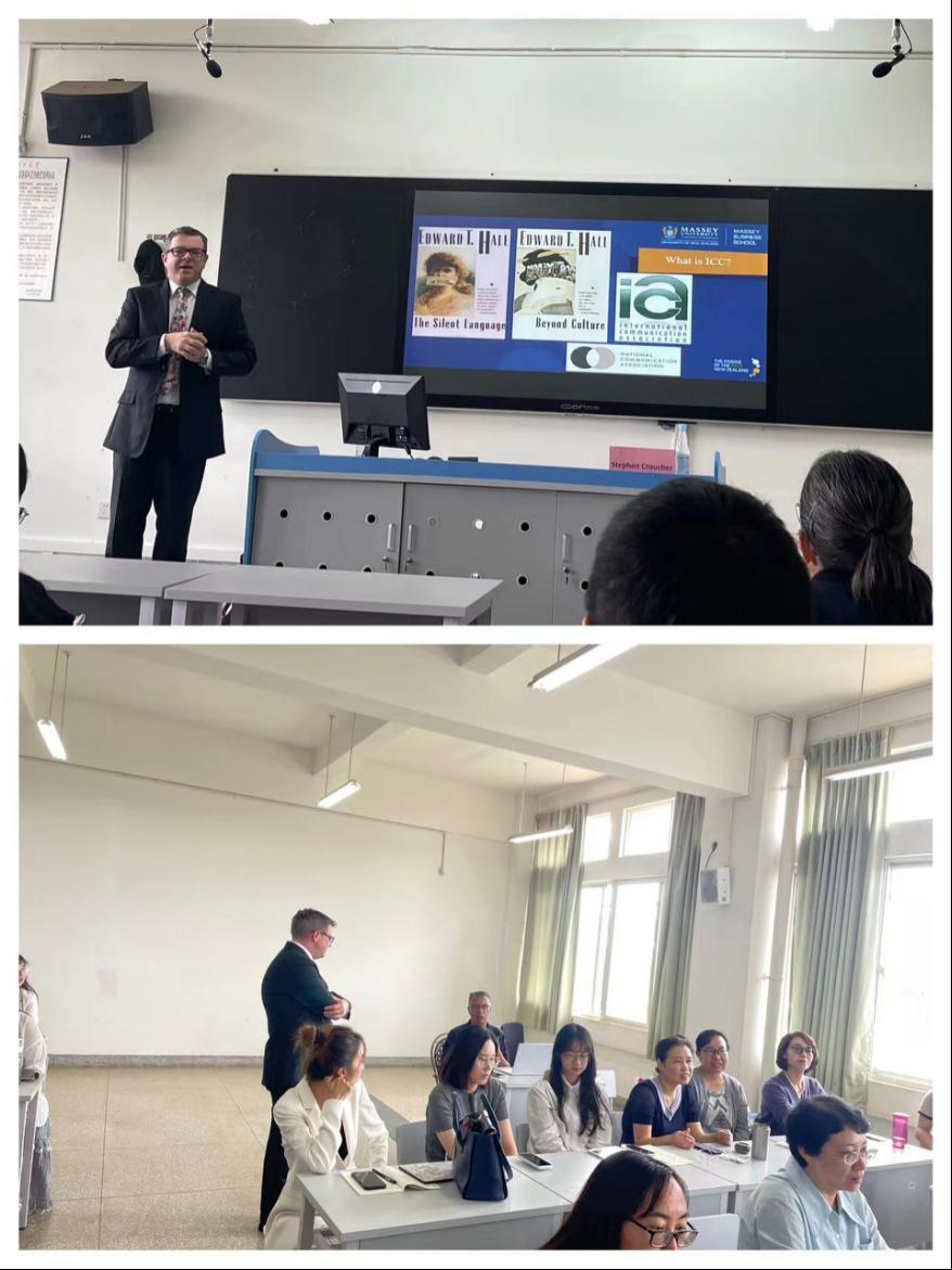 承办的两场明德社科大讲坛在博文楼举行。论坛邀请新西兰梅西大学Prof. Stephen Croucher和Dr. Li Mingsheng到校作了学术讲座,分别由郑景婷教授和郭怡军教授主持,全院近百名教师和MTI研究生参加了讲座。
