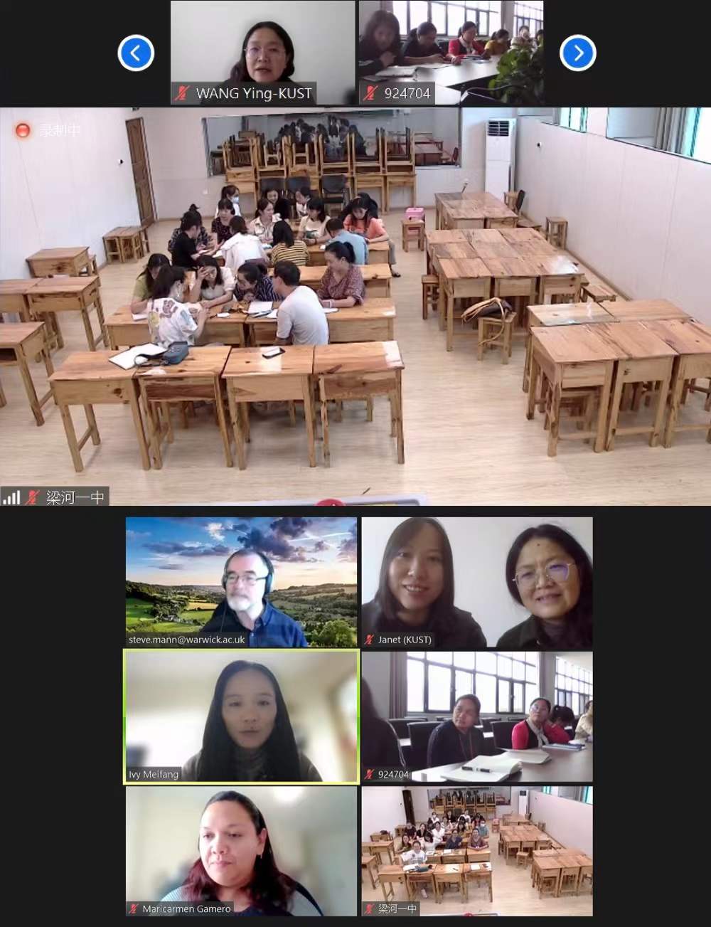 王英教授携团队与梁河一中、镇沅一中举办线上虚拟教研室活动,围绕“如何开展教师专业发展共同体建设”进行深入研讨。活动邀请英国华威大学Steve Mann教授及其团队进行理论指导,梁河一中英语教研组19位一线教师、镇沅一中英语教研组8位骨干教师参会。