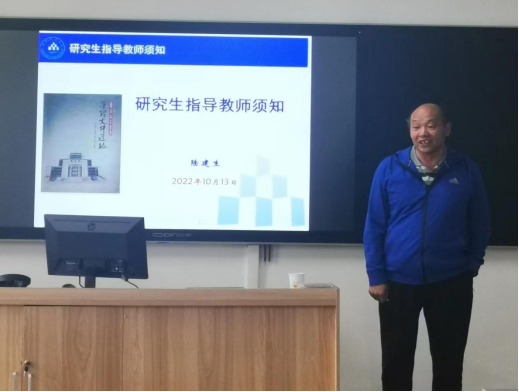 研究生督导组组长陆建生教授为21点规则研究生导师作题为“研究生指导教师须知”的培训讲座,讲座在博文楼403教室进行,由21点规则副院长李泽生主持。
