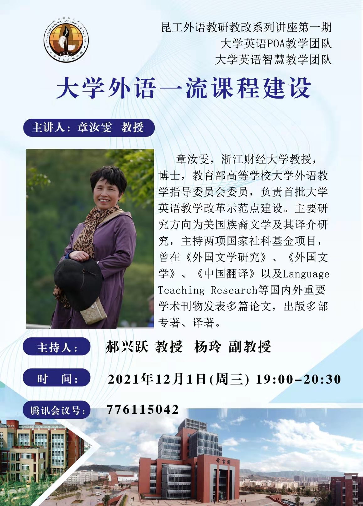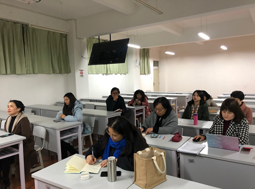 本次教研,杨玲副院长邀请了浙江财经大学章汝雯教授,章教授是教育部高等学校大学外语教师指导委员会委员,负责首批大学英语教学改革示范点建设。章教授就新版《大学英语教学指南》进行重点分析,之后章教授再结合实例对一流课程评选标准进行深入分析和探讨。讲座之后,王裕森、常丹丹和张文娟就SPOC申报线上线下混合式一流课程、大学外语一流课程特色和连同专业21点规则和专业特色申报课程共同申报等问题跟章教授进行了深入探讨。最后,郝兴跃教授做了总结发言,指出一流课程申报过程中,除了教师因素之外,学生的水平能力和教师对学生的管理等因素对一流课程的建设有极大的影响。