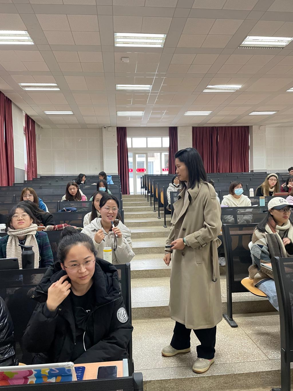 黄娟老师以大量的文本实例,具体化理论概念,同时不断地与同学们进行交流互动。参加讲座的同学们都觉得受益很多。最后,她还鼓励同学们多多学习并大胆尝试用一些不同的翻译理论来增强自己论文写作的新颖性。