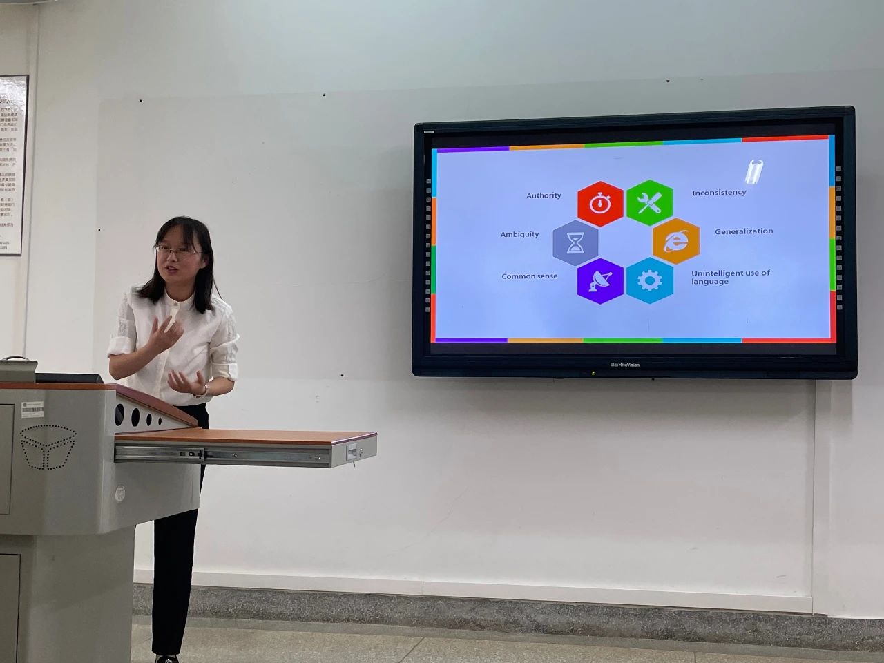 在博文楼502教室举行了新进教师说课和讲课展示活动。研究生公共英语教学部两名新进教师分别以《研究生英语读写译》和《综合英语》课程为例,展示了教学理念和教学设计,同时进行了15分钟的教学讲课展示。