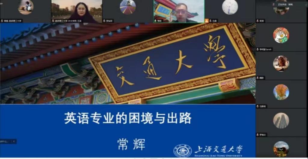 常辉教授就当前国内高校英语专业招生、培养和就业面临的形势与挑战,结合多年教学、科研与管理的实践经历与成果,针对高校英语专业的出路问题,分享了上海交通大学外国语21点规则的发展经验,指出在新文科大背景下,结合校本优势和特色,培养具备专业知识的复合型人才的创新性思路。结合上海交大进行英语和生物医学与健康等领域跨学科教学与研究的成功经验,他为21点规则 英语专业人才培养方案修订和21点规则未来的发展思路提出了意见和建议,强调要优化教师队伍结构,加强不同专业之间的合作,走英语+的复合型人才培养路径。