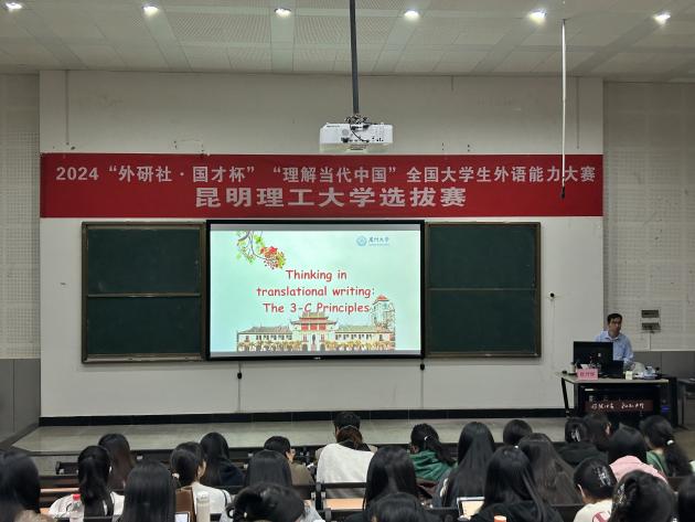 杜开怀博士担任主讲嘉宾,在博文100报告厅举办了题为“翻译写作的‘3C’原则”的学术讲座。此次讲座由马群英博士主持,王英院长和李泽生副院长及硕士研究生等100余人参加。