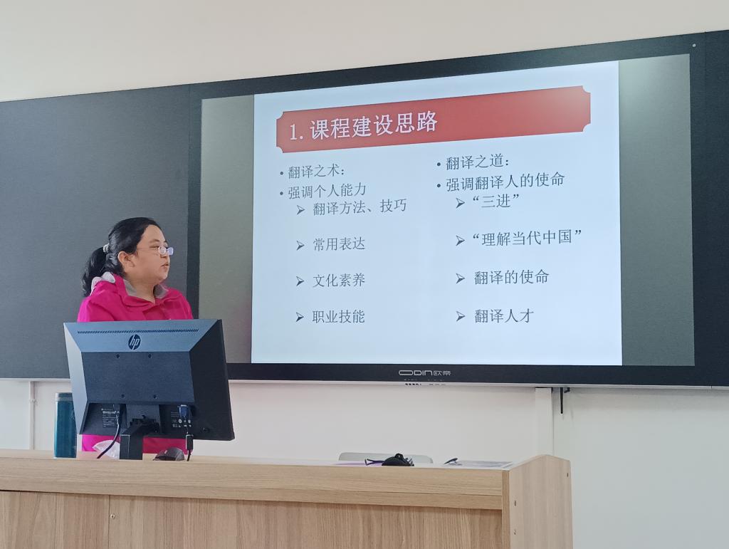 为全面学习把握习近平总书记关于教育的重要论述的科学内涵和精神实质,进一步加强理论研究,推进理论体系向教材体系、教学体系转化。会议对《习近平总书记教育重要论述讲义》英文版进行了学习交流,并对讲义中的亮点和课程思政融入路径作了进一步的研讨。任佳佳老师对讲义第二讲中“德”与“能”的关系的学习体会进行了汇报,结合阅读课程中的教育主题,对中西教育理念作了对比分析,通过指导学生开展校训翻译实践,让学生对中国智慧和中国社会主义特色的教育观有了更深的理解。董雨晨老师通过重读习近平总书记给北外老教授们回信,提出英语类专业教育能够让学生更好地宣介新时代的中国,促进中外文明交流互鉴。
