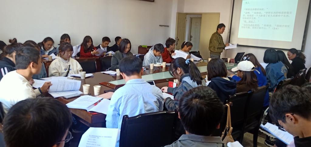 石洋老师首先向大家介绍了文学赏析的基本技巧并结合自身经验阐述小说赏析的要素。同学们学习热情高涨,会前已对本次读书会选取的小说——海明威的《白象似的群山》进行了精读,会上又在老师的领读下对文中的人物进行剖析并重点就“象征”这一手法展开讨论。
