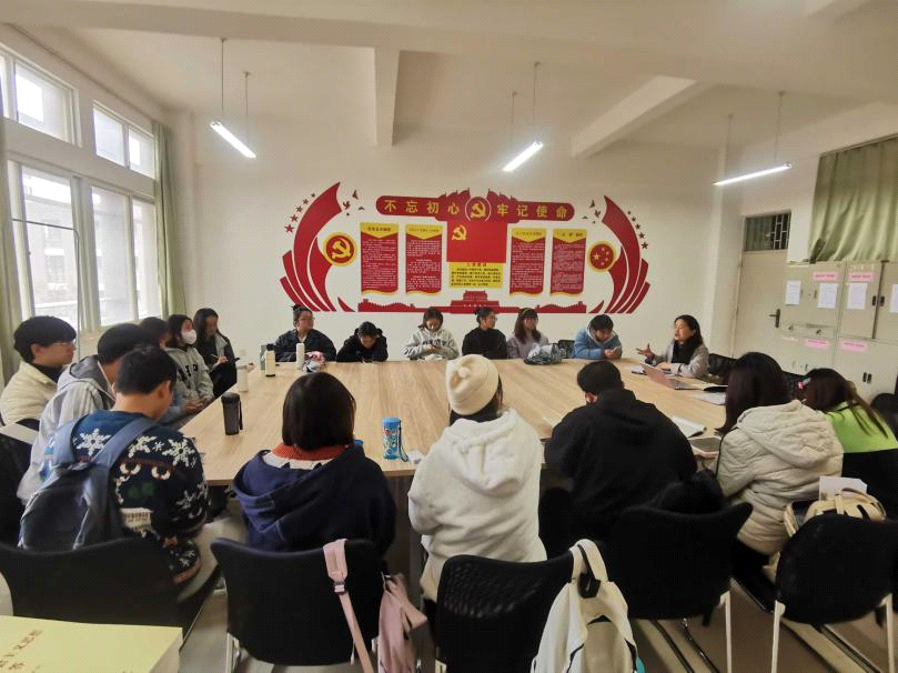 会上,全体党员学习十九届六中全会公报双语热词,支部书记马倩就全会公报的双语热词给学生党员做了解读与分析。支部学生党员依托“学习强国”平台,结合日常专业知识学习,将自己选取的党史故事进行英语口头分享,党员就每个话题开展感悟交流和讨论,并分享心得体会。