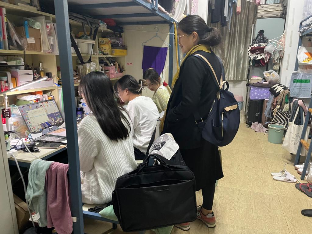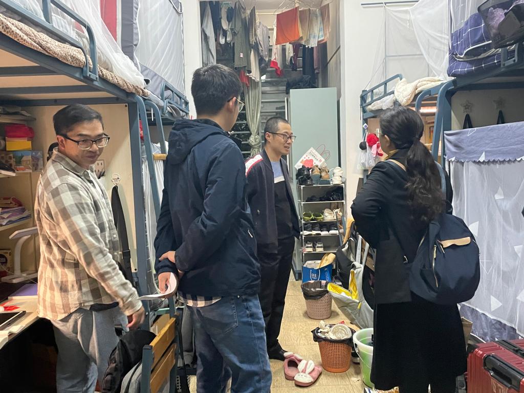 党政领导前往我院学生宿舍实地走访看望学生。通过实地查看学生住宿条件,面对面展开交流谈心,深入了解同学们在学习、生活、心理等方面的具体情况。此次走访实现本科学生宿舍全覆盖,各班辅导员和班主任陪同看望。