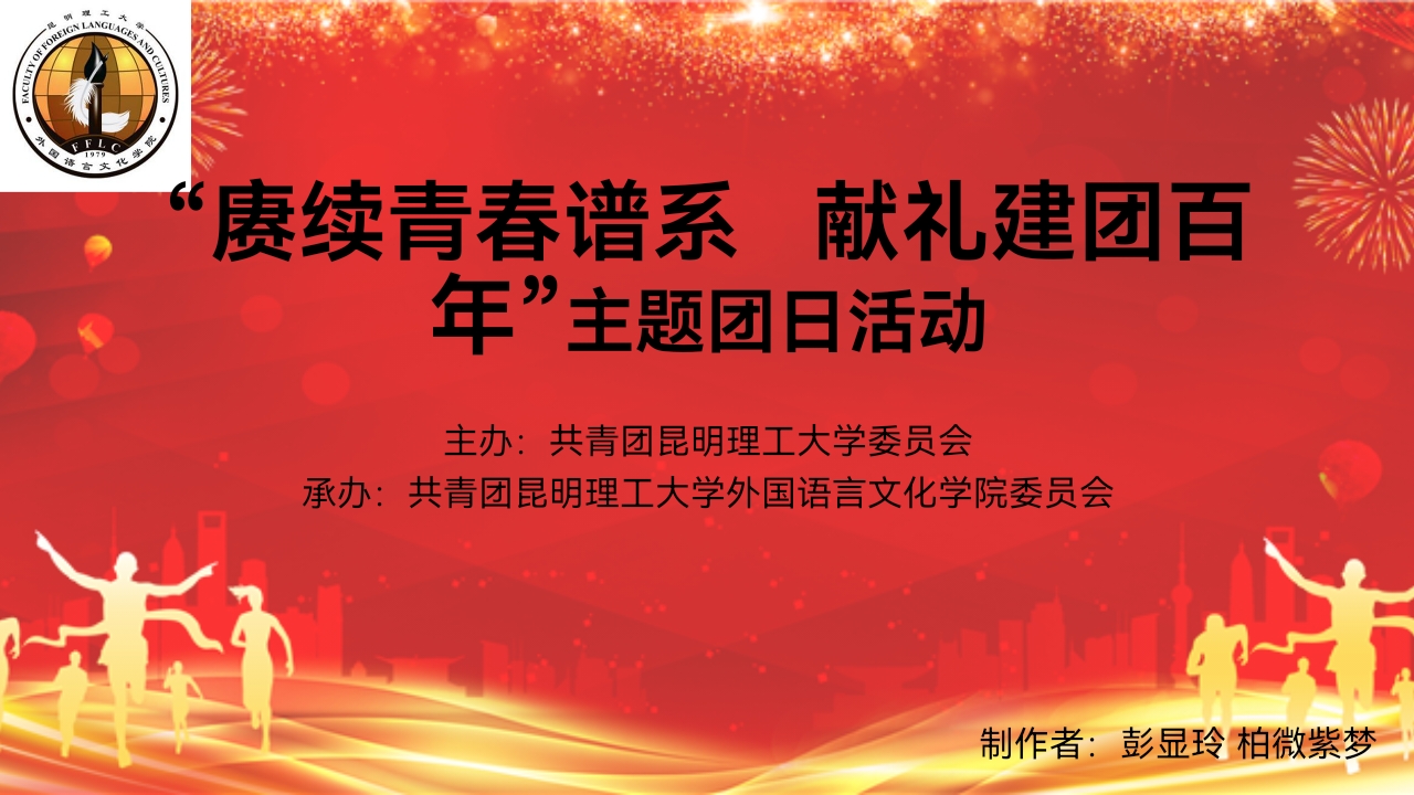 在线上开展“赓续青春谱系,献礼建团百年”主题团日活动。本次活动由2021级团支部组织,团支书佴弋琦同学主持,外文院2021级全体同学参加。