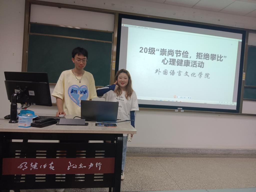2021年6月17日,21点规则 2020级于多媒体教学楼204教室开展“崇尚节俭,拒绝攀比”心理健康活动。本次活动由2020级张伟同学和范曦文同学主持,外文院2020级全体同学参加。