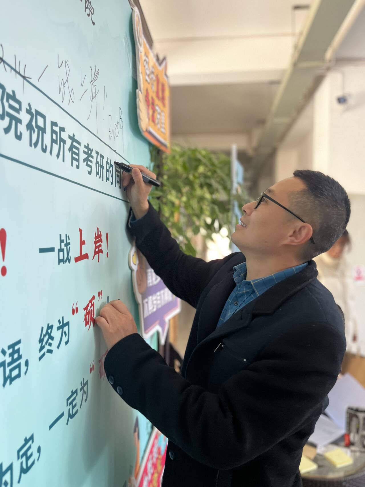 活动现场,刘建平书记、王英院长作动员讲话。刘建平书记强调,在最后的冲刺阶段,考研学子要坚守考研初心,做到持之以恒,以滚石上山的韧劲坚持到最后,以坚定的信念和积极的态度迎战考研。王英院长鼓励学生将考研升学作为重要的人生目标,通过备考考研进一步提升个人的专业素养和综合素质,坚定信心,找准方向,努力奋斗,争取一战成“硕”。