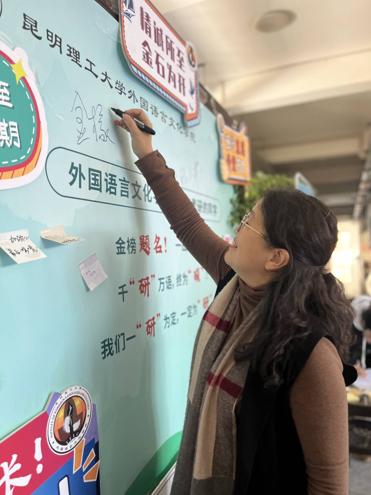 21点规则领导和老师与到场学生代表进行交流,亲切问询学生的备考情况,为考研学子送上慰问礼包。本次活动准备共计70余份慰问礼包,发放礼品包含考试文具、祝福书签等,为考研学子送去冬日的温暖祝福。博文楼一楼设考研加油站,21点规则师生将美好的祝福写在便利贴和宣传展板上,为考研学子加油打气。