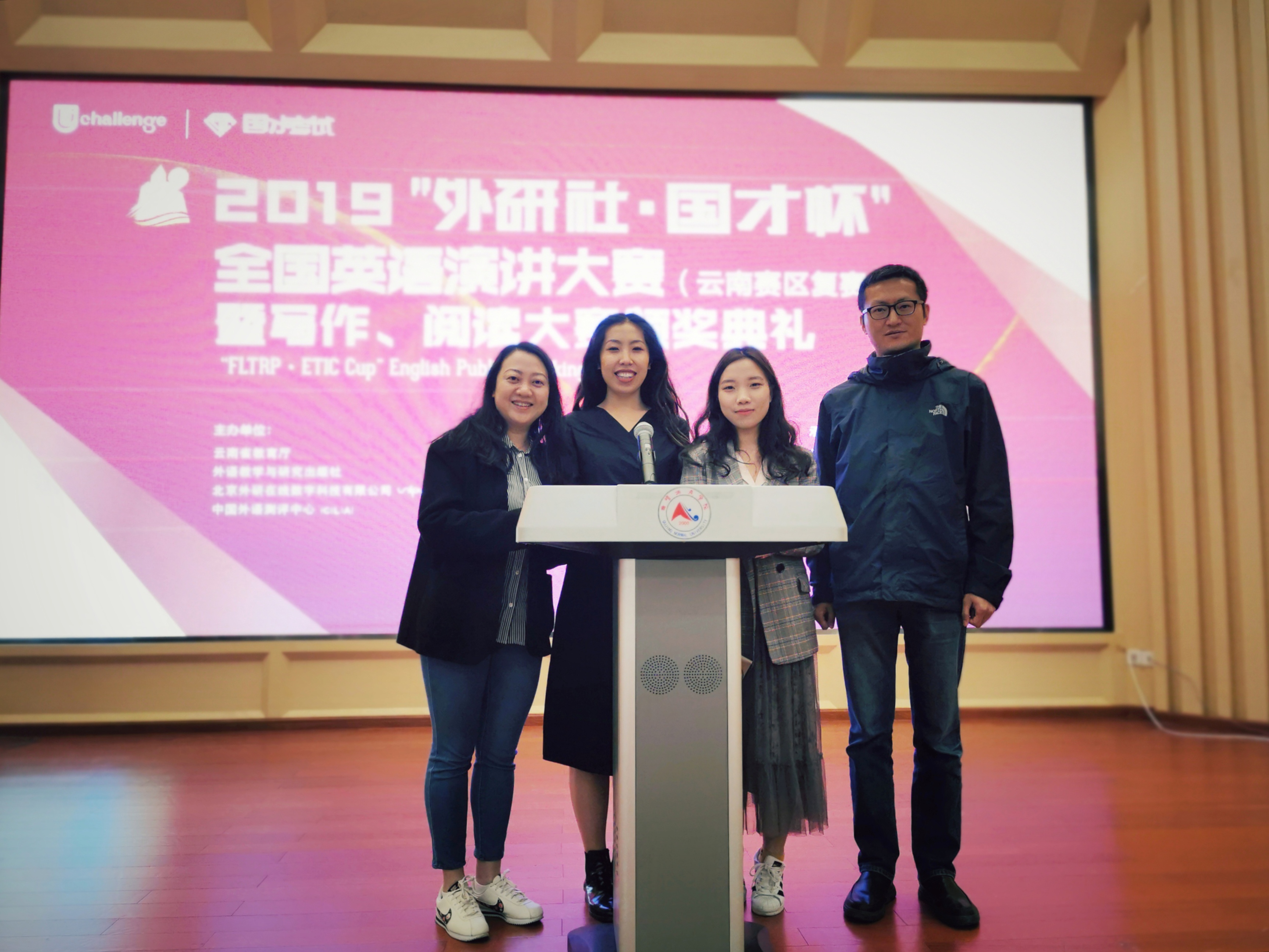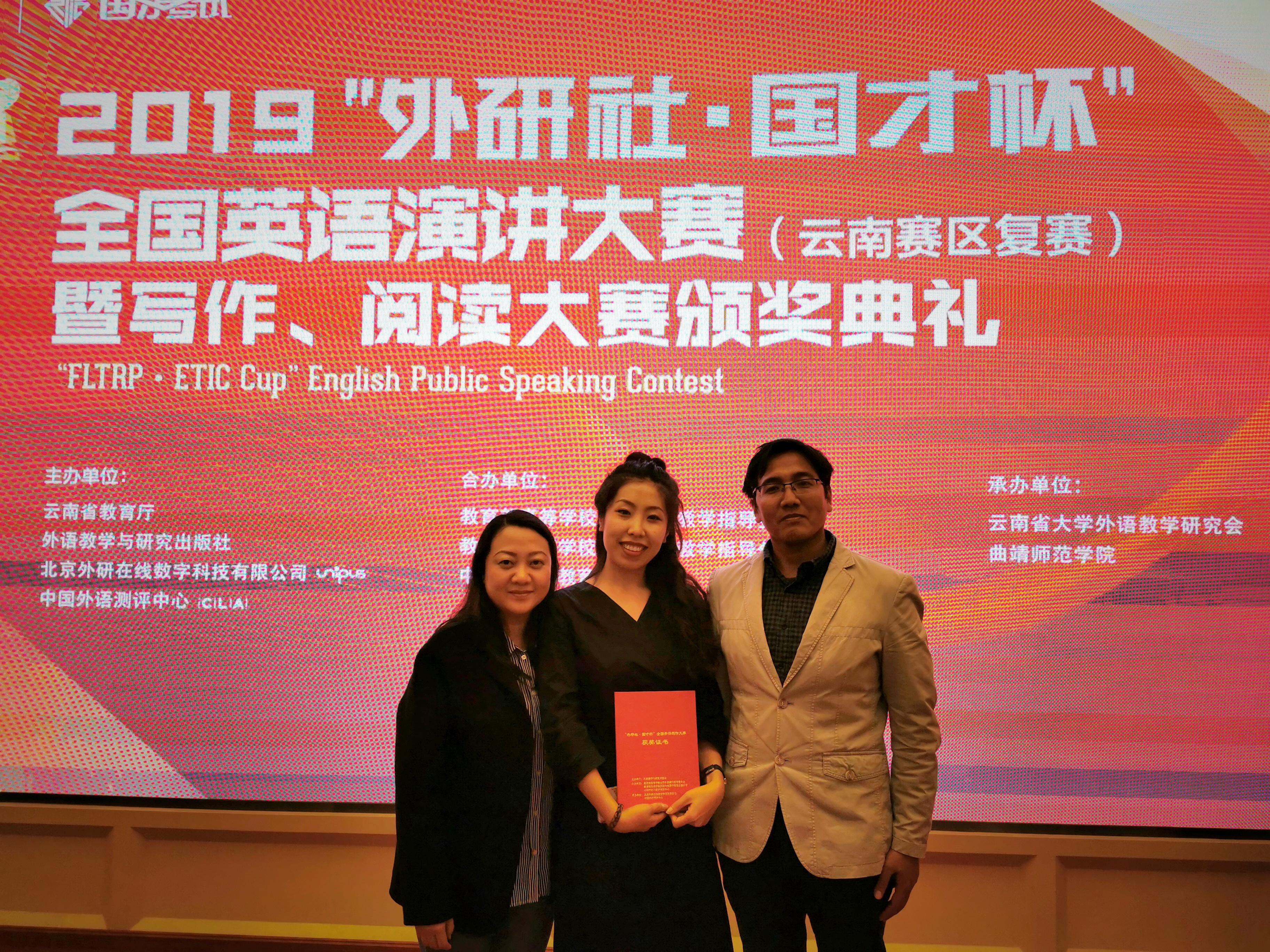 MTI笔译专业一年级学生朱玥同学获得云南省一等奖,管经院一年级研究生唐雪榕同学获得云南省二等奖。随后,2019“外研社·国才杯”全国英语大赛云南赛区复赛写作、阅读、演讲三项赛事的的颁奖典礼隆重举行,曲靖师范21点规则副校长李莉教授,外研社西南区负责人侯凯先生,云南大学外国语21点规则院长徐志英教授等分别为比赛致辞。