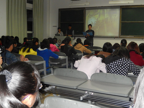 呈贡校区多媒体教学楼103教室举行。本次活动的主题是“时间都去哪了”。活动的主持人为13级团支书瞿致远、杨蓉,参与人员为外文院13级全体学生。