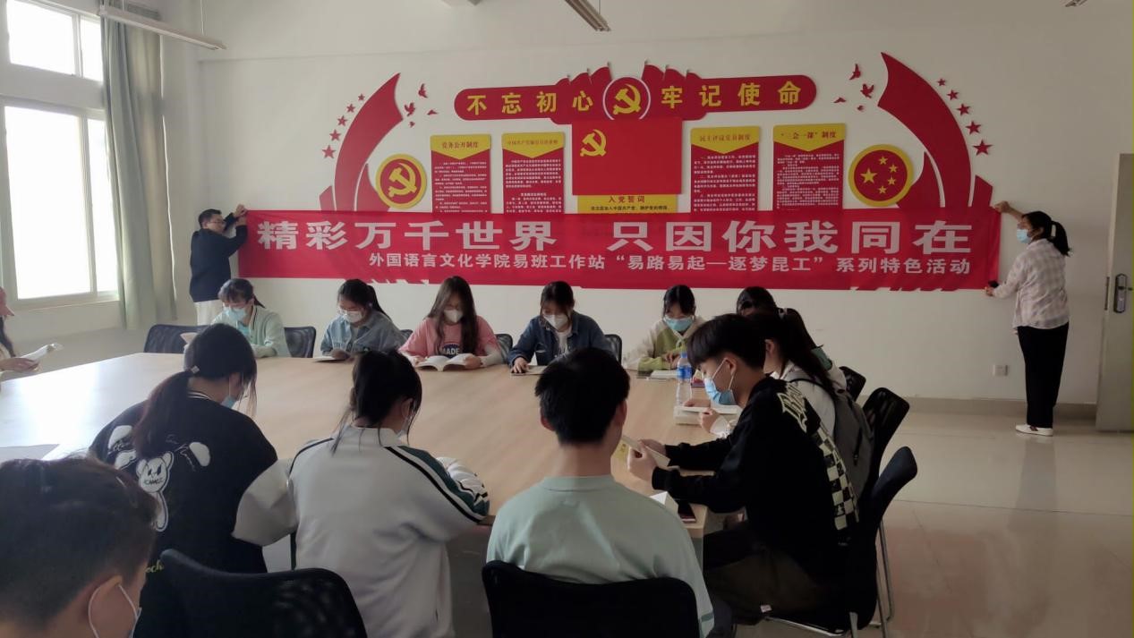在博文408教室开展“书香外文——双语读书日”活动。本次活动由外文院学生会组织,2021级陆诗雨和吴玲丹同学主持,外文院全体学生参加。