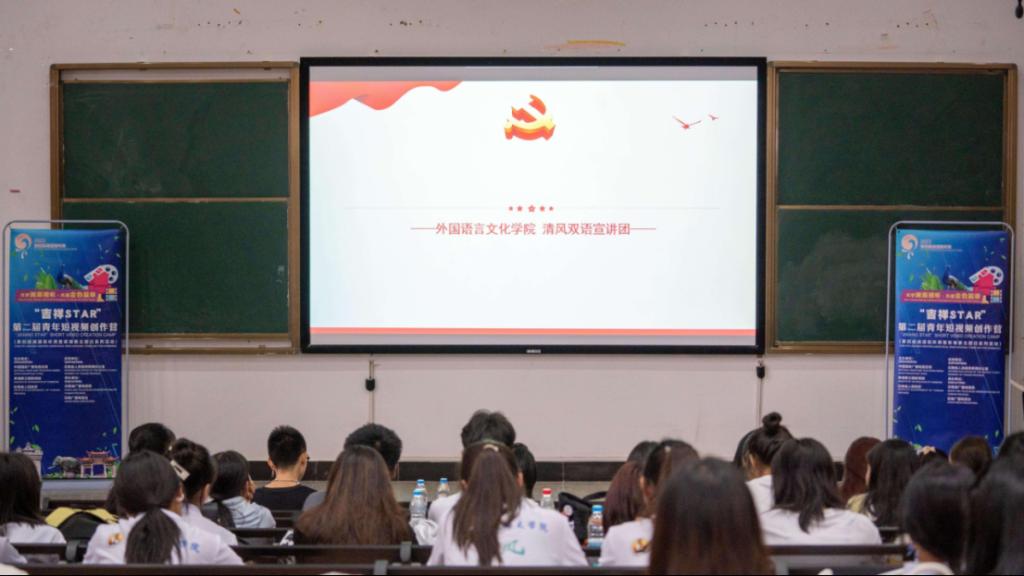在主播征集、培训选拔等环节为活动提供支持,推选共计47名英语专业本科生参加海选活动。