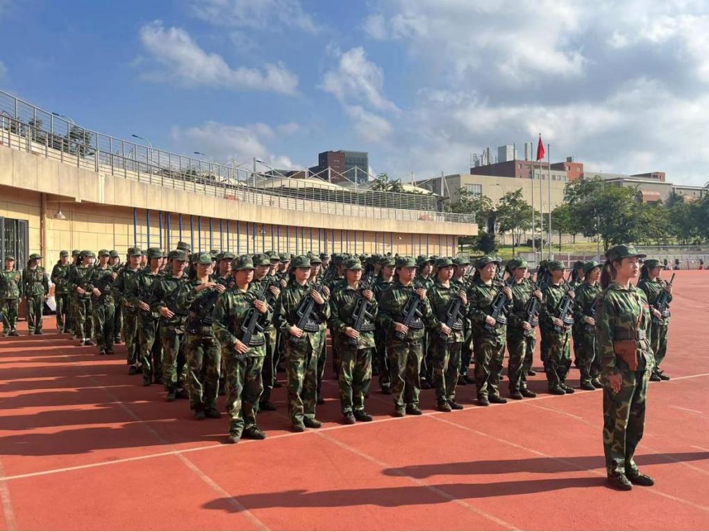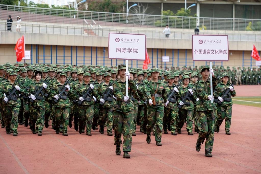 2023级77名新生全员全程参训,与国际21点规则、法21点规则新生组建编入学生军训团三营十四连。