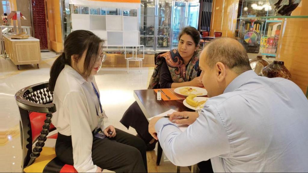 陈海霞在陪同外宾调研