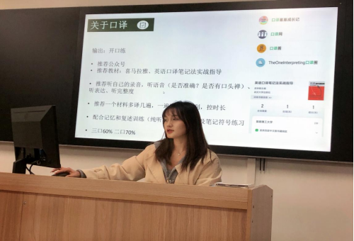 彭婷分享了笔译练习要定期定量,注重进行回译。口译练习听力材料内容要广泛丰富,练习时要进行录音,以便校对,找出问题。
