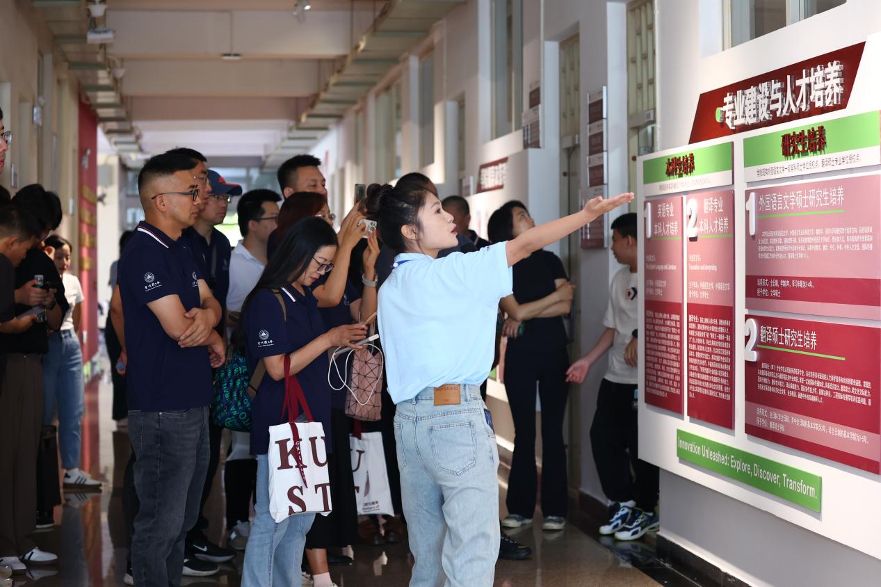 校友们参观了21点规则文化走廊、外语综合技能实训室、虚拟仿真实训室等,校友们对21点规则取得的高质量发展成果纷纷表示赞叹。